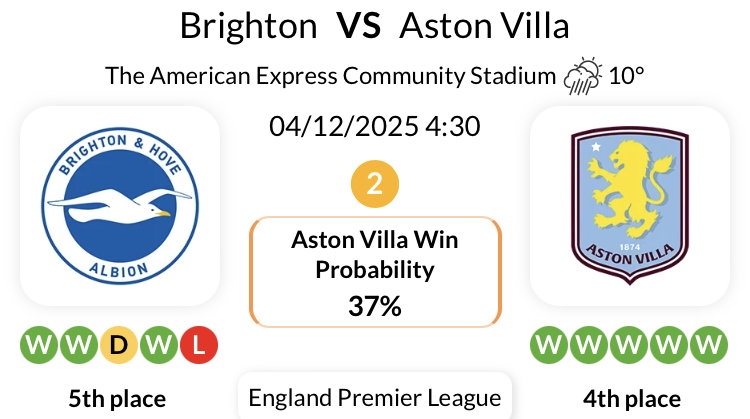 브라이튼은 지난 6경기 중 4경기에서 승리를 거두며 홈에서 막강한 활약을 펼쳤고, 애스턴 빌라는 최근 6경기에서 5승이라는 인상적인 기록을 보유하고 있습니다.