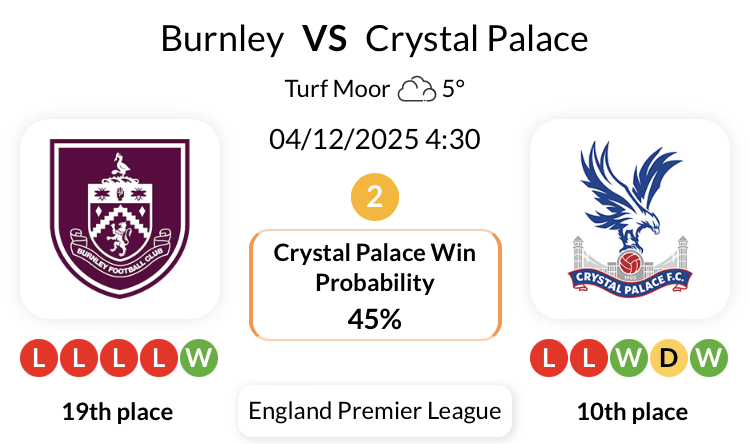 현재 10점으로 19위를 달리고 있는 번리는 이번 시즌 20점을 자랑하는 9위 크리스탈 팰리스와 맞붙게 됩니다.