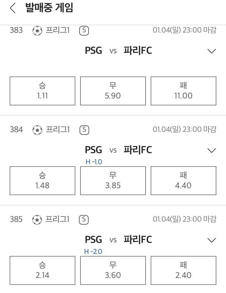 PSG의 일방적인 공격 전개가 예상됩니다.